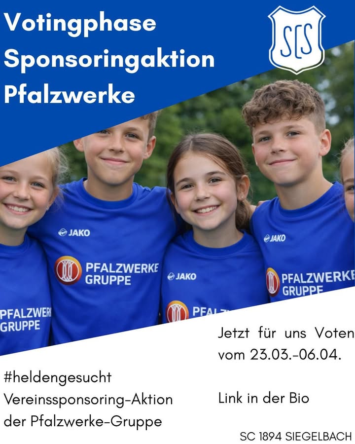 🚨 Jetzt abstimmen & uns unterstützen! 🚨 Wir sind bei der **#heldengesucht Vereins-Sponsoring Aktion der Pfalzwerke Gruppe dabei! 💙 Mit eurer Stimme können wir neue